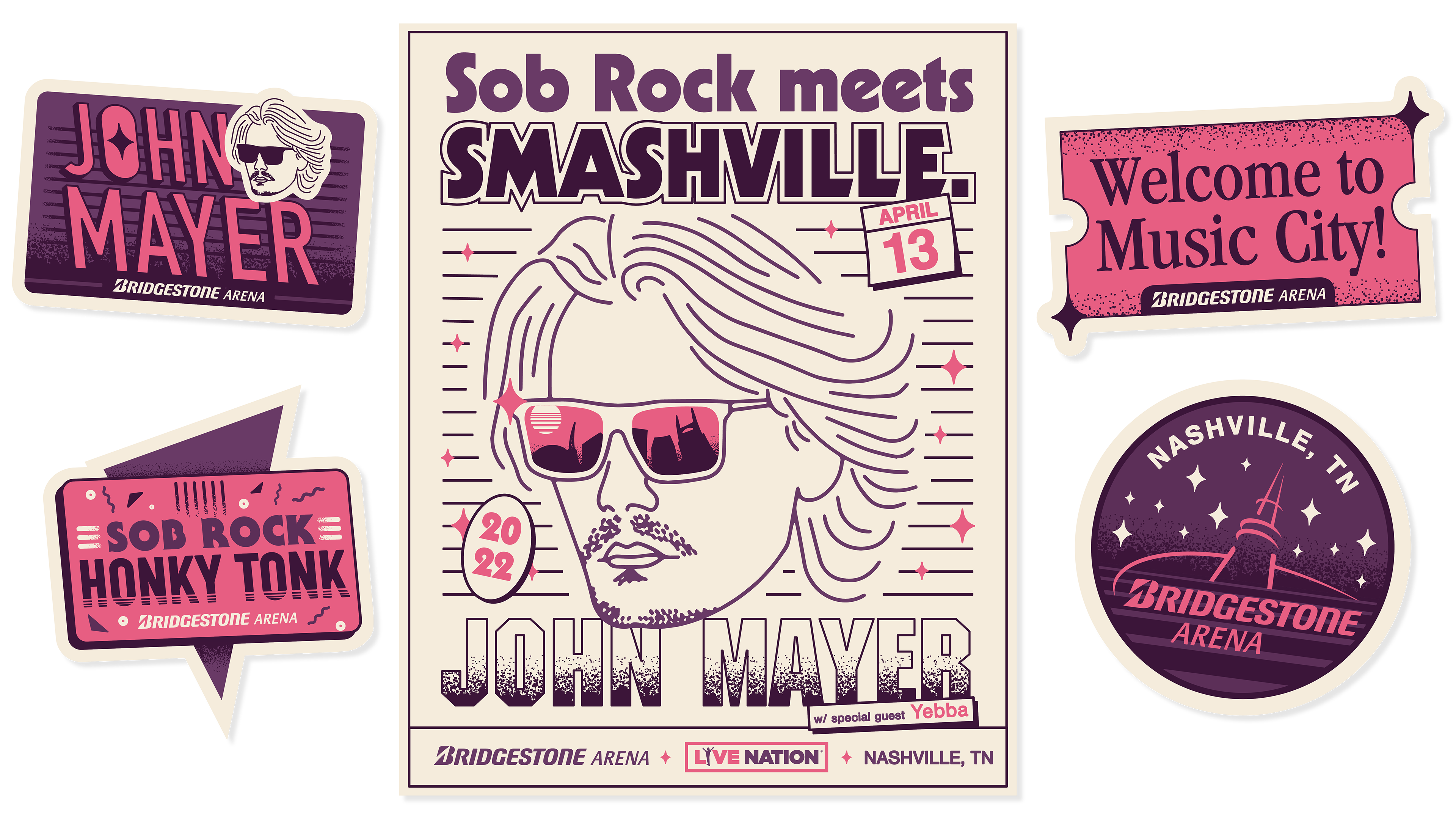 Selected backstage ephemera created for artists and crews visiting Bridgestone Arena. The goal was to have each artist leave feeling appreciated and seen while in Nashville.