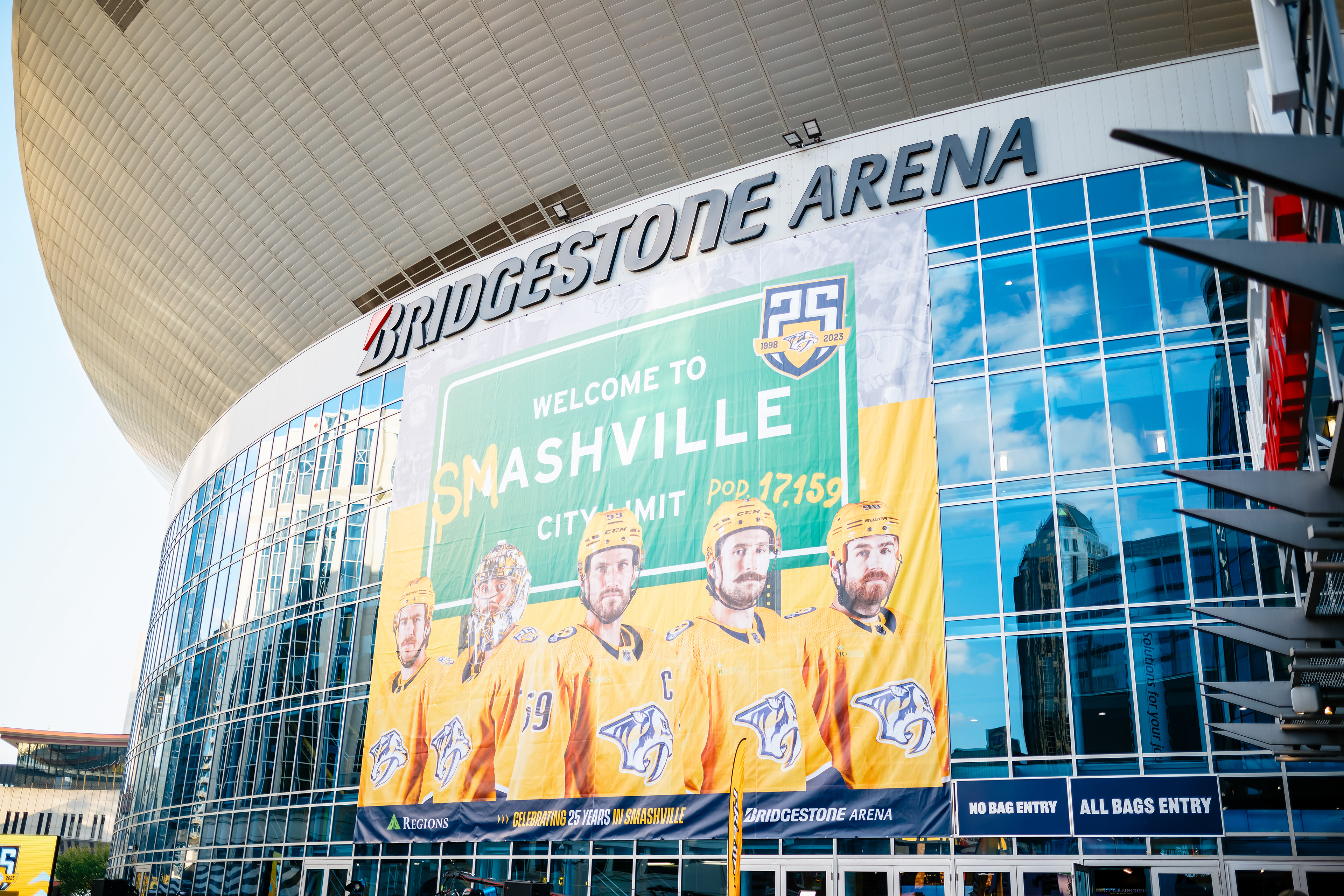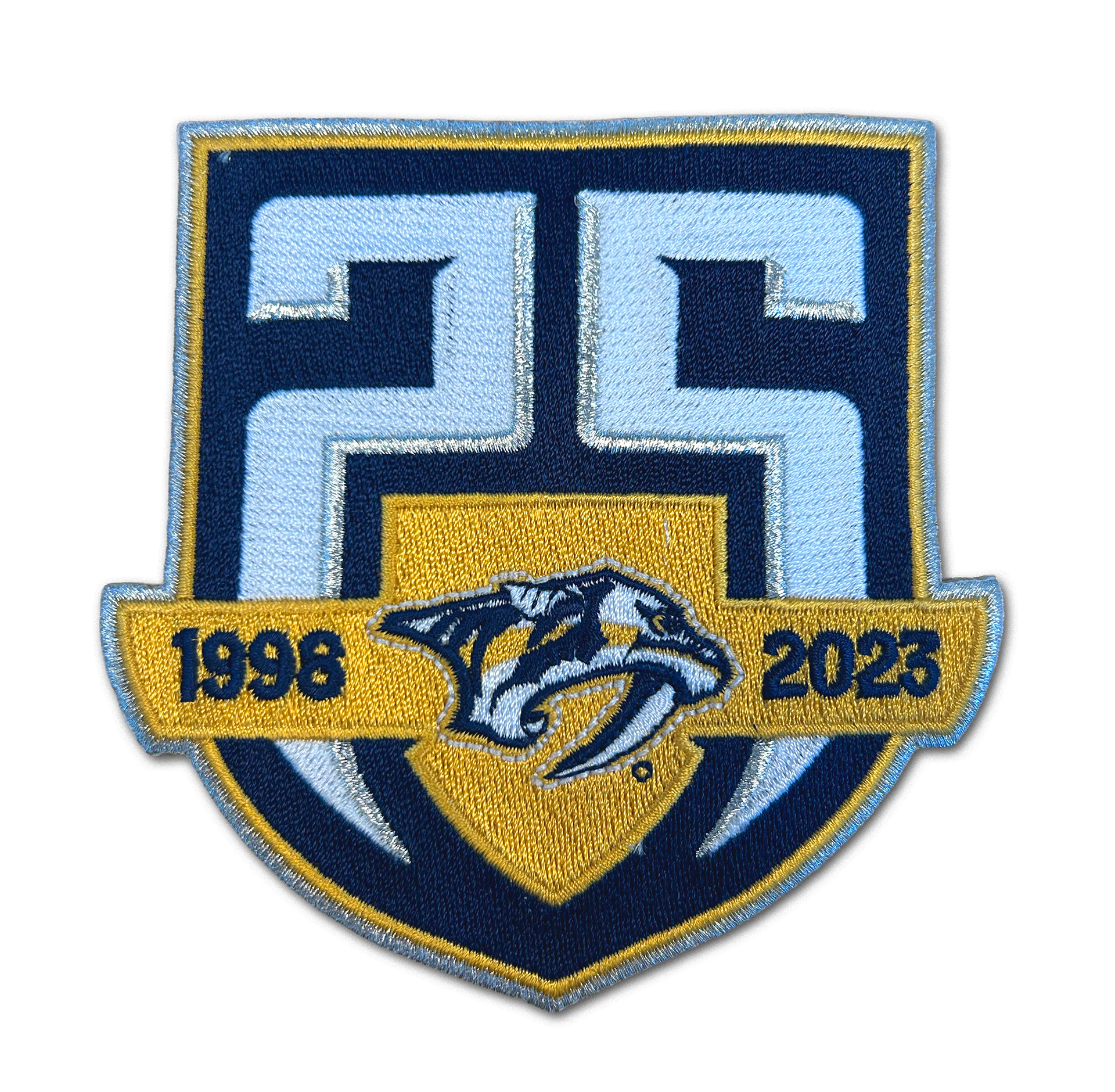 The 25th Anniversary posed a unique storytelling opportunity to recall all of the franchise's greatest moments over the past 25 years while also getting fans excited for the next 25+ years of Predators hockey. The foundation for this idea began with the creation of the 25th Anniversary logo, a mark made to be modern and exciting while also incorporating subtle design details from the original Predators brand as a sort of easter egg to lifelong fans.
