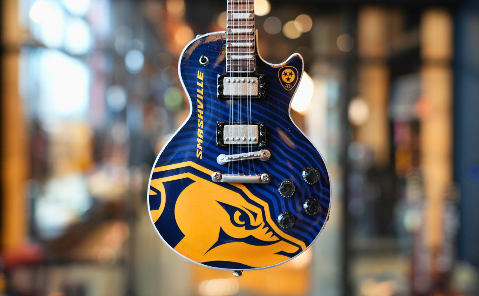 There's nothing more fitting to embody the "Music City Hockey" tagline than our collaboration with Gibson guitars to create custom Preds-themed designs to sell in our team store.