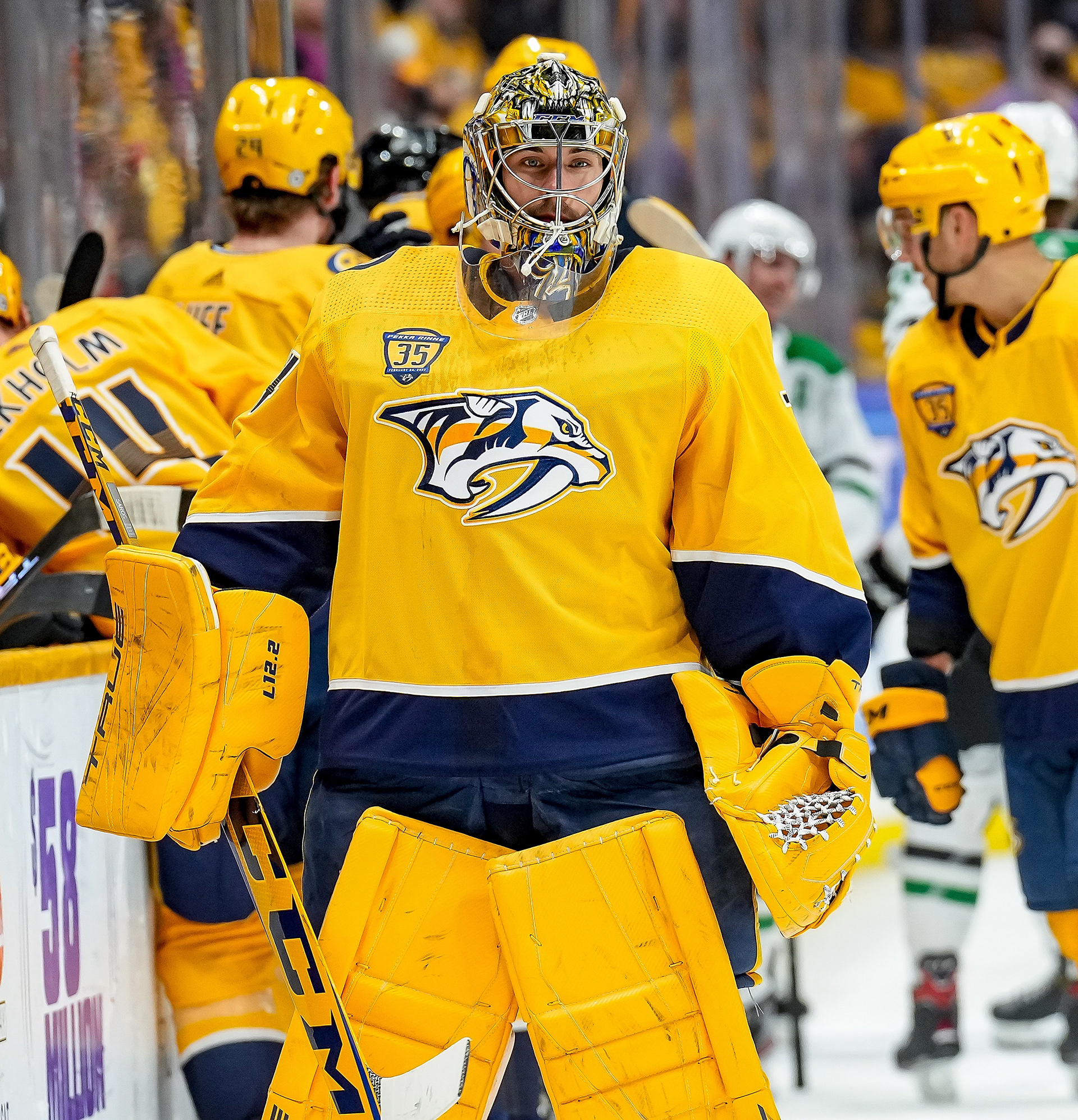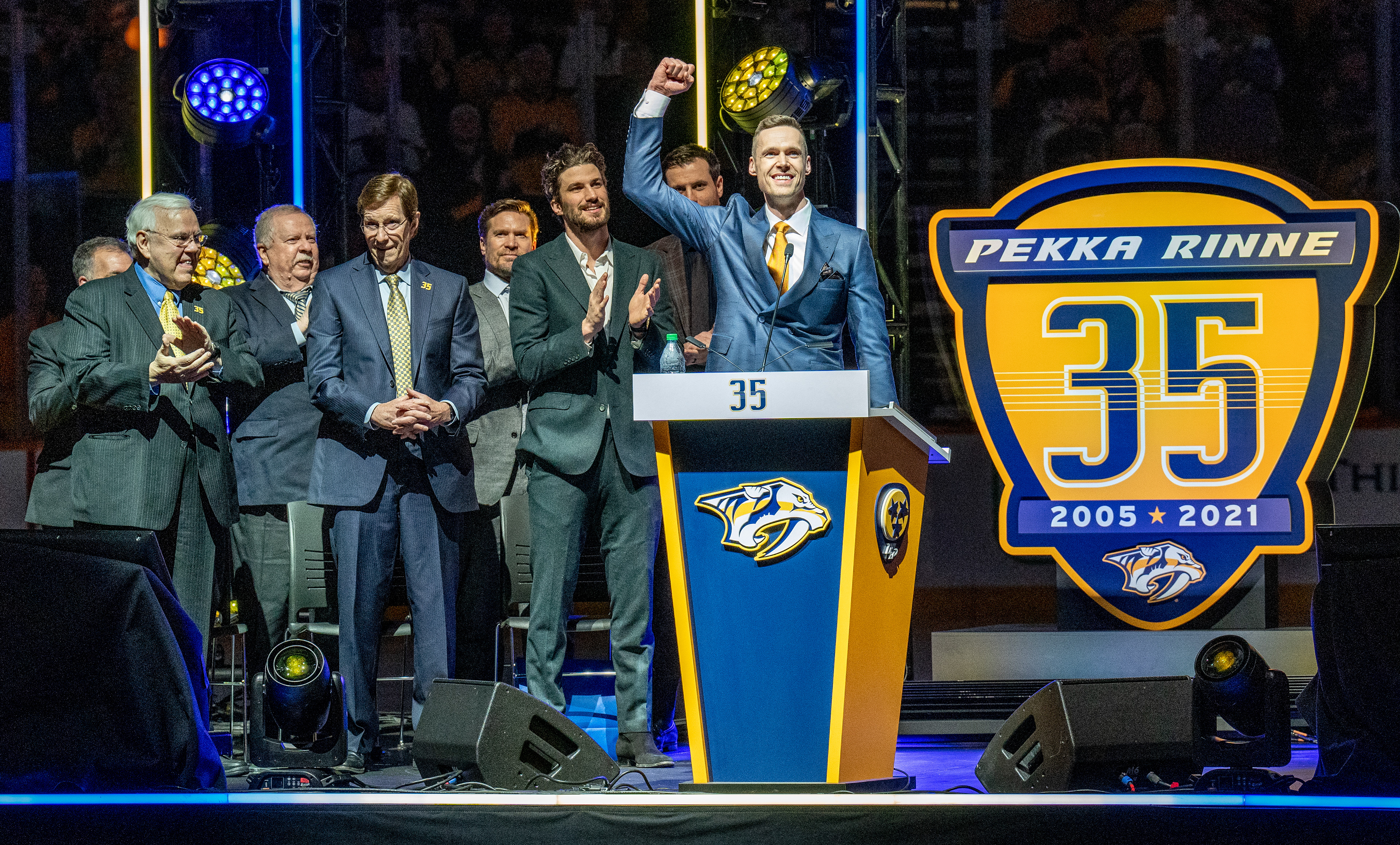 Custom Preds Gold blazers featuring an embroidered version of my Golden Hall on the chest are given to all inductees of the new Preds Hall of Fame.