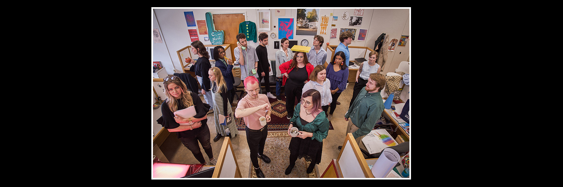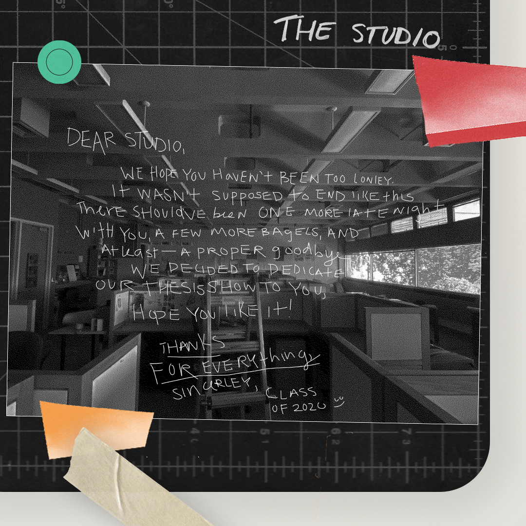 Quickly, our task became creating something that was able to represent a very eclectic group of people in a way that still remained cohesive and appealed to both our peers and professionals alike. When challenging our group with this task, the idea of our Studio space became a strong metaphor for our class. It's chaotic, but creative and a true melting pot of all of our ideas.